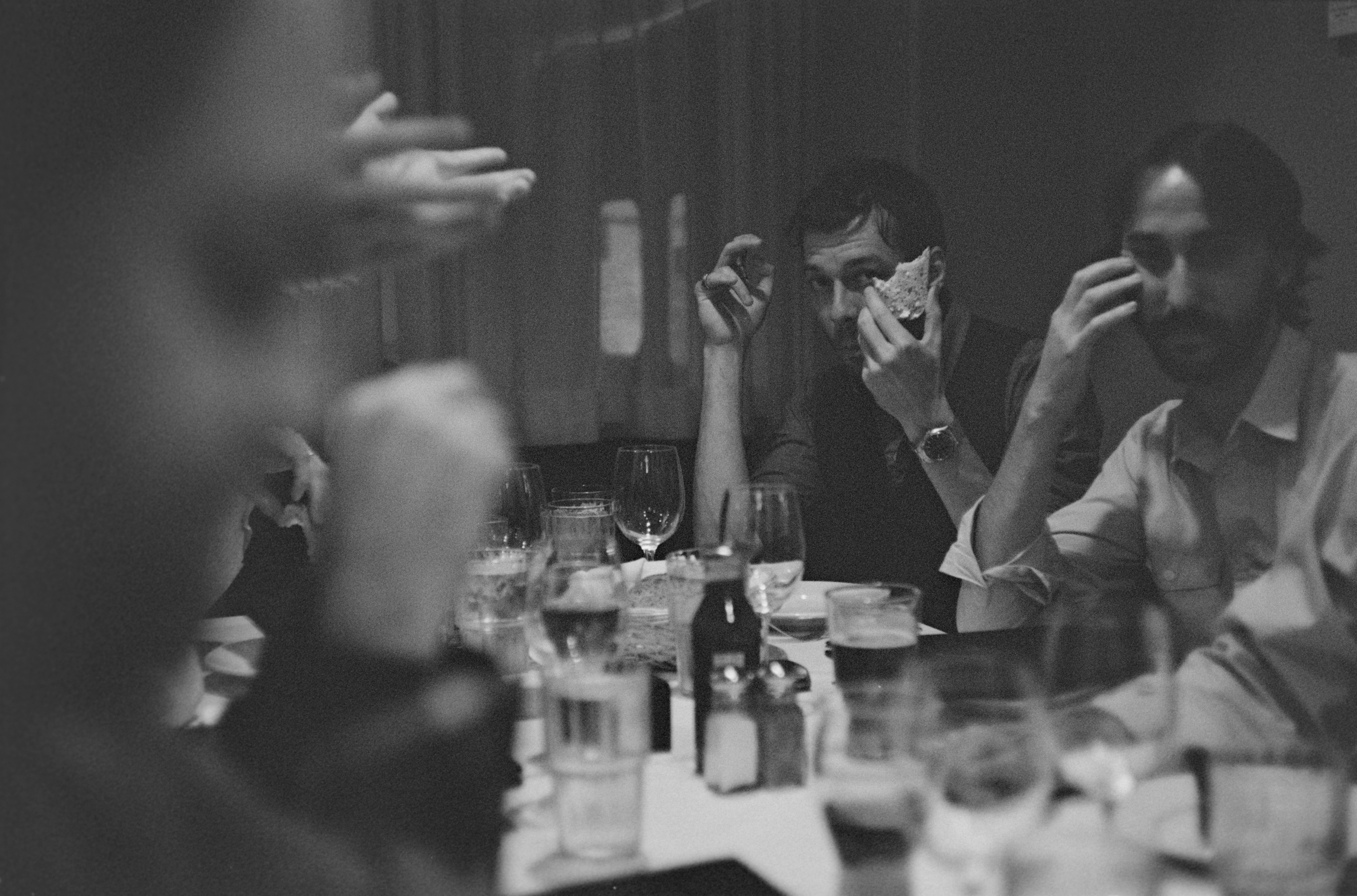 Before hopping on the subway I found a discussion on flickr about pushing Tri-X to an astonishing 25600 ISO using Rodinal developer and a technique called stand development. That’s over 4 stops more than I push Tri-X using Diafine. I read the discussion on the way to the restaurant and decided I would try an experiment: regardless of the lighting conditions, I would shoot the entire roll with the aperture wide open at f/2, and with a shutter speed of 1/60. I think the Summicron is lovely wide open like that, and 1/60 guarantees I won’t get too much motion in the shot.