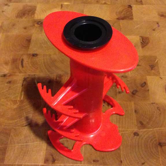 You see, large format processing has always been a process that requires either room for a darkroom (which I don’t have) or equipment that allows you to develop film in a temporary space. The HP Combi-Plan was my weapon of choice for years. You can develop multiple sheets and it takes up a remarkably small space. It’s a vertical plastic tank with a carriage for holding the film. You slide the film into plastic grooves and then ratchet down a bracket that holds them in place, and it has a light trap in its input and output holes so you can pour in and pour out chemistry with the lights on. But pouring and draining take forever, and there are a lot of parts. Lose one bit and you’re screwed. I’ve kept mine together, remarkably, but I’ve had inconsistent results because of the time it takes to pour chemicals. One workaround is to fill the tank with chemicals in a blacked-out, darkened room and drop the film in with the tank open, then seal it and turn on the lights. Still a lot of mucking about, a challenge seeking a solution. Same thing with vertical tanks and small trays: you have to use them in the dark, obviously, until fixing’s done.