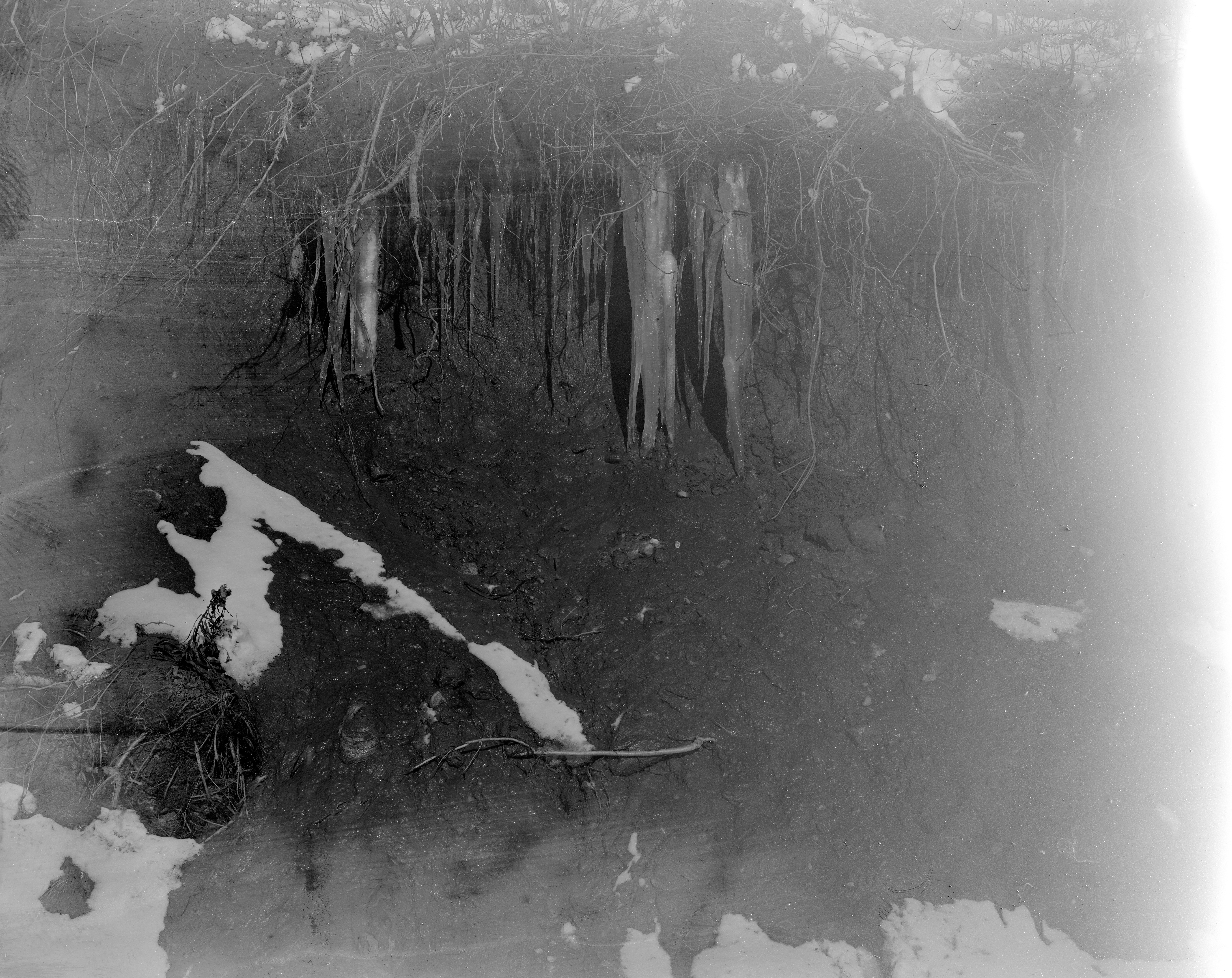 In short, I underexposed it by about 4 stops by thinking too quickly, not double-checking my completely backward calculation, and not double-checking with a meter (which I thought I did not need). My scene was in the direct sun, so I thought at f/16, I would shoot at 1/25, which (and here’s why I screwed up) equalled f/32 at 1/100–should have been 1/5 on that shutter. Anyway, I couldn’t find a suitable recipe for pushing this ortho film (the only reason a sane person would push it would be by accident, like I did), so I made up a recipe, which did not work well. Atomal (ATM) 49 1:8 for 1 hour; 30 seconds initial agitation and a few inversions at the half-hour mark. I chose Atomal because I had just mixed up a batch to develop the Tri-X sheets and because I had been planning to use the Atomal if I had exposed the ortho correctly.